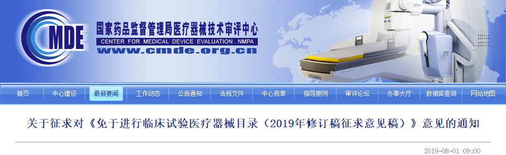 關(guān)于征求對(duì)《免于進(jìn)行臨床試驗(yàn)醫(yī)療器械目錄(2019年修訂稿征求意見(jiàn)稿)》意見(jiàn)的通知