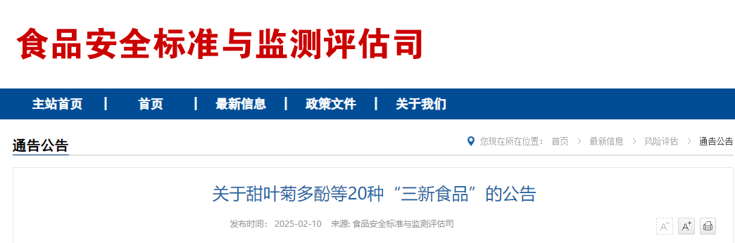 關于甜葉菊多酚等20種“三新食品”的公告及解讀