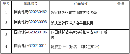 為進一步提高保健食品審評服務(wù)質(zhì)量,推進保健食品全流程電子化申報和審評工作,方便申請人查詢審評意見和提交注冊申請材料,根據(jù)《保健食品注冊與備案管理辦法》及配套文件的規(guī)定,對已在保健食品注冊管理信息系統(tǒng)提交電子版申請材料的變更、轉(zhuǎn)讓、補發(fā)證書保健食品注冊申請,一律發(fā)放電子審評意見通知書,不需另行領(lǐng)取紙質(zhì)審評意見通知書。對于以下清單所列產(chǎn)品,申請人可憑注冊賬號和密碼在保健食品注冊管理信息系統(tǒng)(網(wǎng)址:https://xbjspzc.gsxt.gov.cn/regist_enter/)查詢打印審評意見通知書,在規(guī)定時限內(nèi)按照通知書要求提交補充材料。